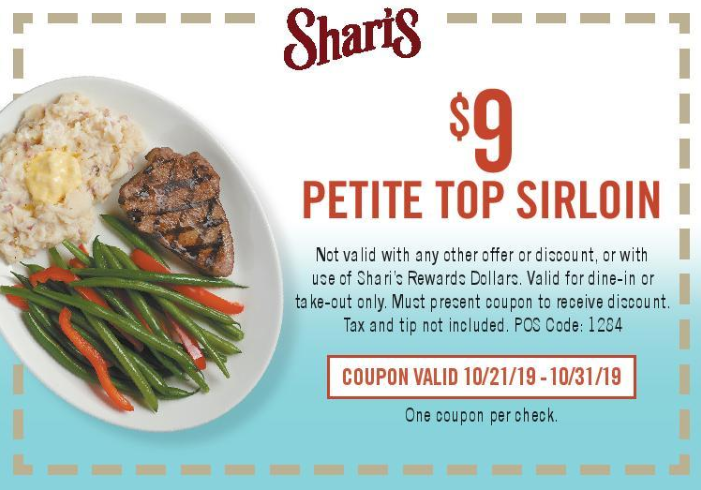 Shari's Printable Coupons Shari's Restaurant Coupons 24525 Russell Rd Kent, WA The staff at shari's restaurant is so friendly. Find 10 sharis berries coupons and discounts at promocodes.com. Free slice of pie every wednesday. Enjoy 25% off the purchase of select products. 10% off $29+ birthday berries. Get 5% off everything in the store.